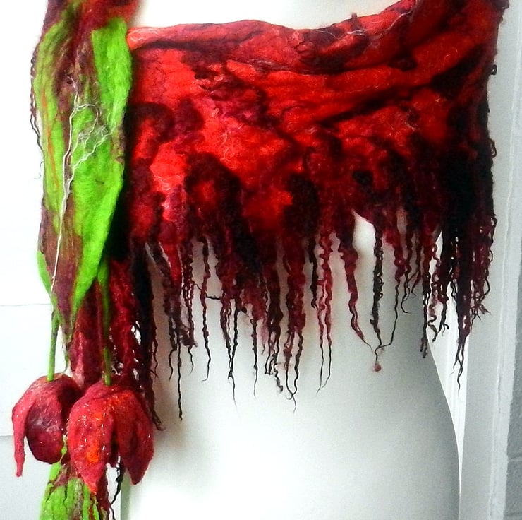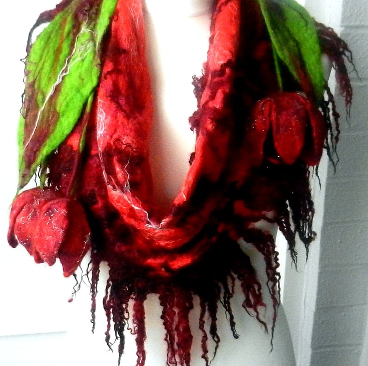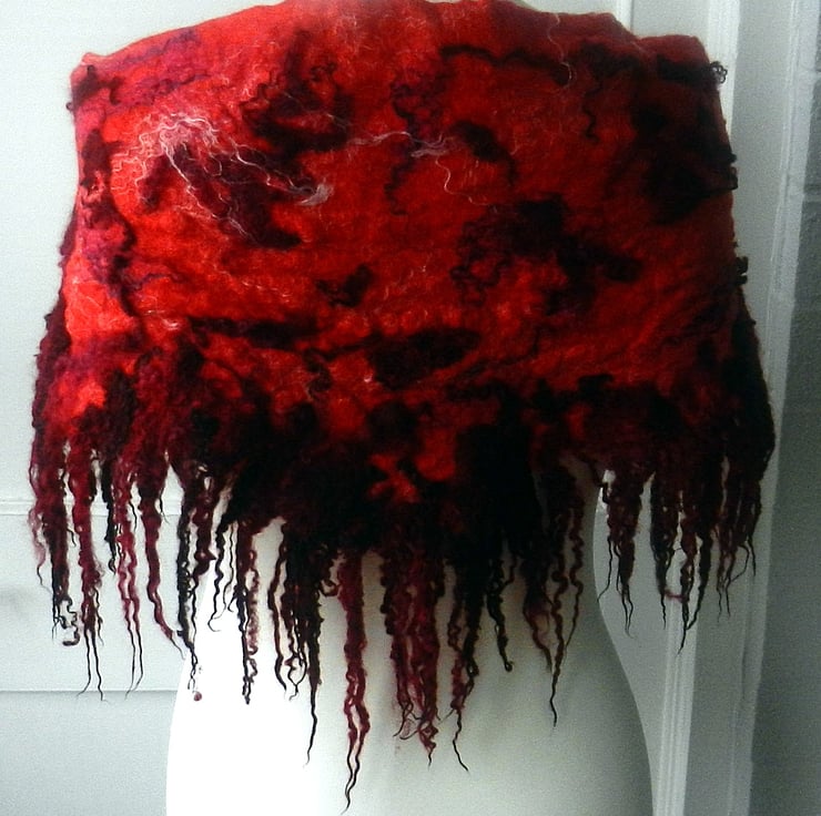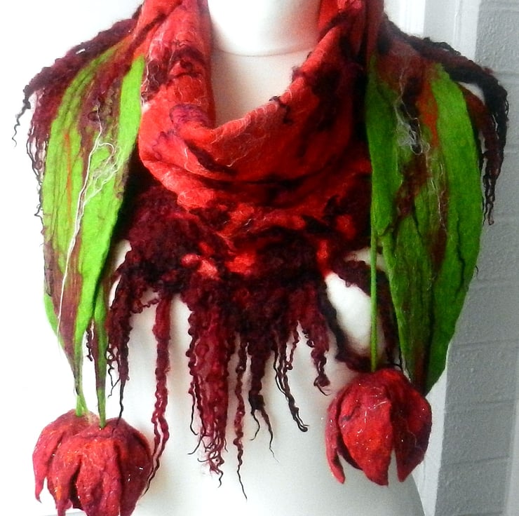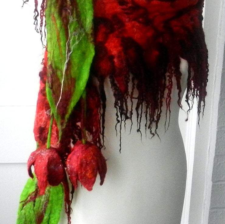 Felted, Wool Jewelry felted woman ART NET scarf ,shawl