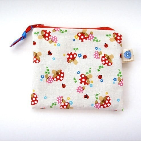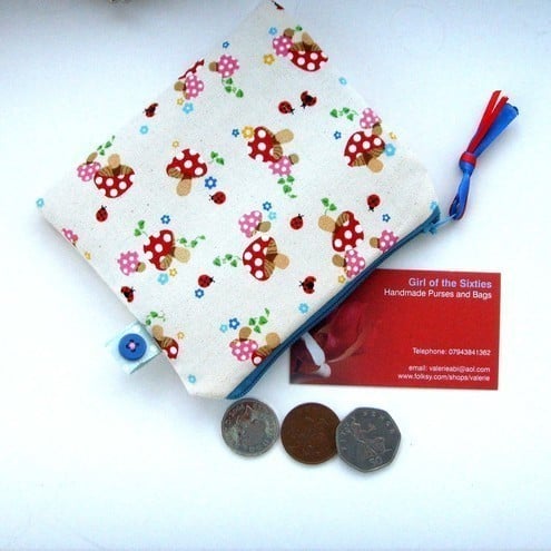 Cute little coin purse with contrasting zip, ribbon and lining.