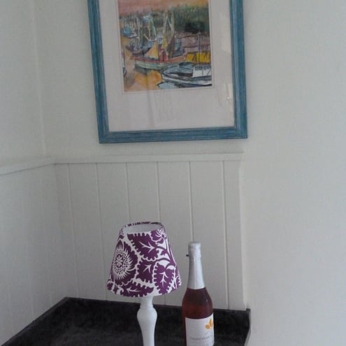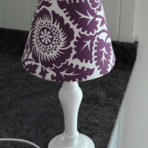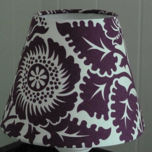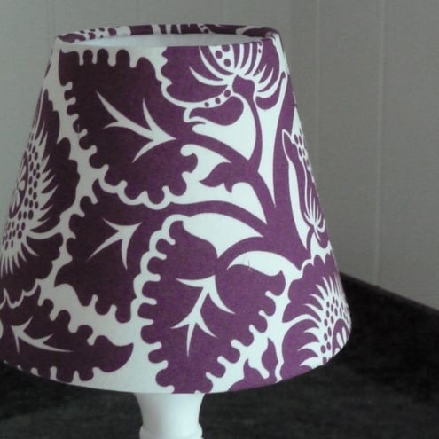 Small lampshade in lovely purple and white Amy Butler cotton fabric.