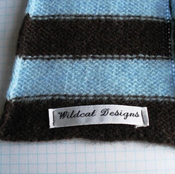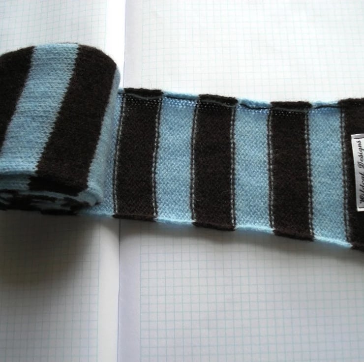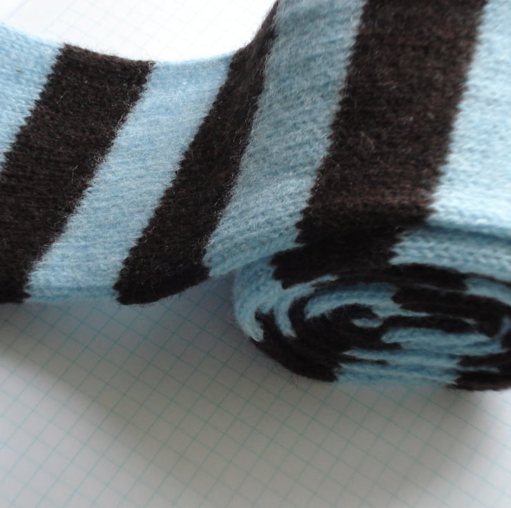 This scarf is produced on my vintage mechanical domestic knitting machine then felted to make it nice and cosy.