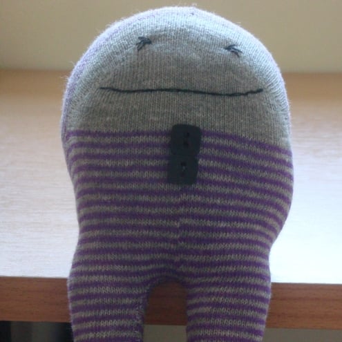 Made from a cotton sock and buttons, handsewn and filled with hollowfibre filling (which complies with the furniture and furnishings (fire safety) regulations 1988). Measures approx 9 inches/24 cms in height .