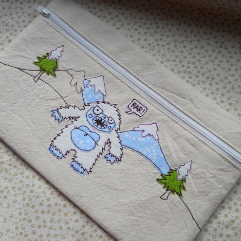 limited edition yeti collection! embroidered pencil case / make up purse*these yeti designs are a very limited edition - by special permission of little black heart