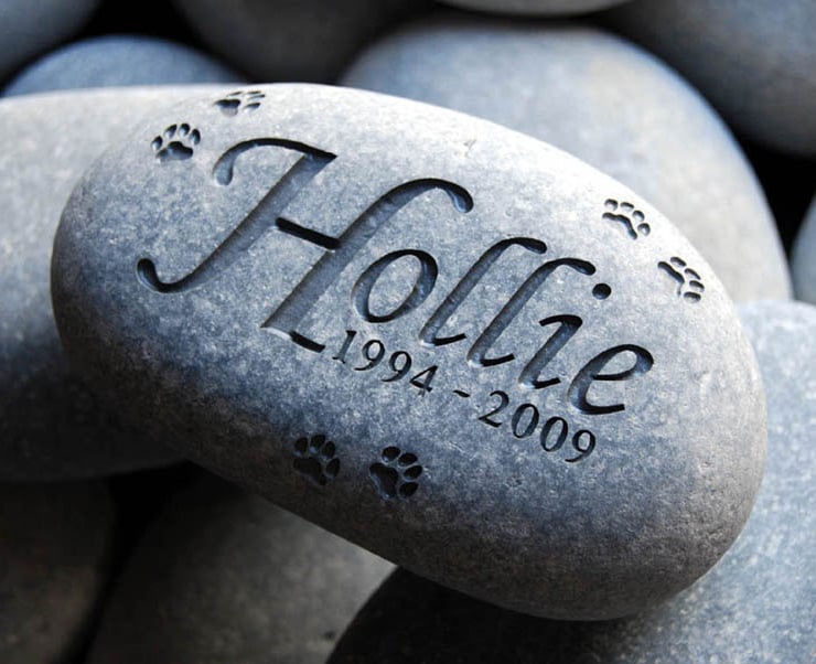 All my pet memorial stone grave markers use natural, weathered stone. Unlike the composite plastic stones that will need to be replaced over time, these will sit sympathetically in your garden wherever you have chosen to bury your beloved companion, keeping their memory close.