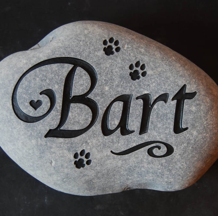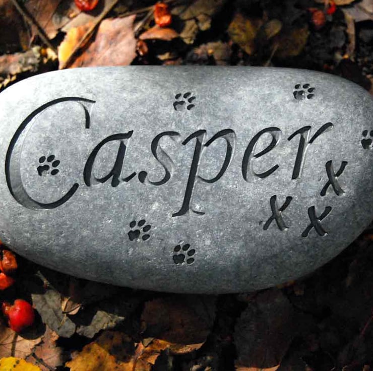 After the loss of my cat Elliot 10 years ago, I was very disappointed to find that the vast majority of pet memorial stones for sale were very impersonal and a bit depressing. To top it off, they were also often made with composite plastics open to deterioration. I didn't want these for my Elliot, I wanted a beautiful cat tribute for him, a rustic stone that would last as long as the tree his ashes are buried beneath. I wanted his memorial headstone to be as individual to him as he was to me. I wanted a memorial to remind me to be happy, not sad. So I set about making my own engraved stone tribute just for him. Soon after, family and friends were asking me to do the same for their lost loved ones and I haven't stopped since. Over the last 10 years I have engraved personalised memorial stones for the loveliest of people. I have been sent many wonderful photos to put faces to the names, everyone full of character and as individual as my Elliot.