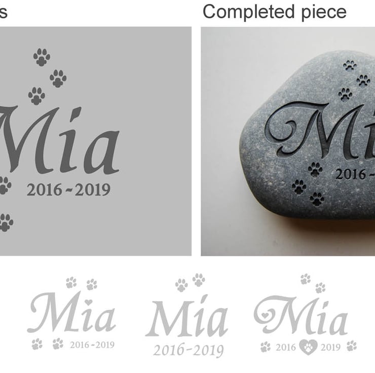 You will then be emailed approx 6 to 8 design layouts showing how your choice of text and motifs will look on the stone chosen for you.