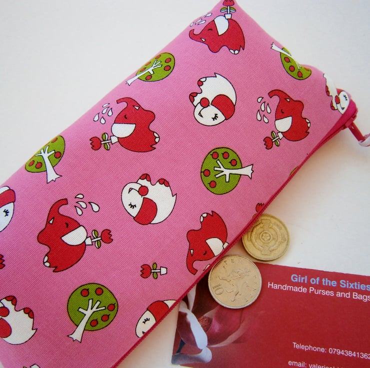 Very cute little elepahants Japanese printed fabric purse, perfect for all your cards, notes and change and make up