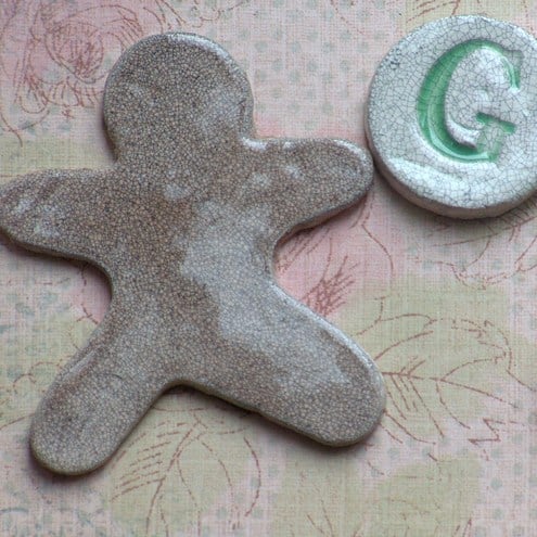 Each letter is stamp with my vintage stamps, and coloured using lovely coloured under glaze, then finished in my trade mark crackle glaze.