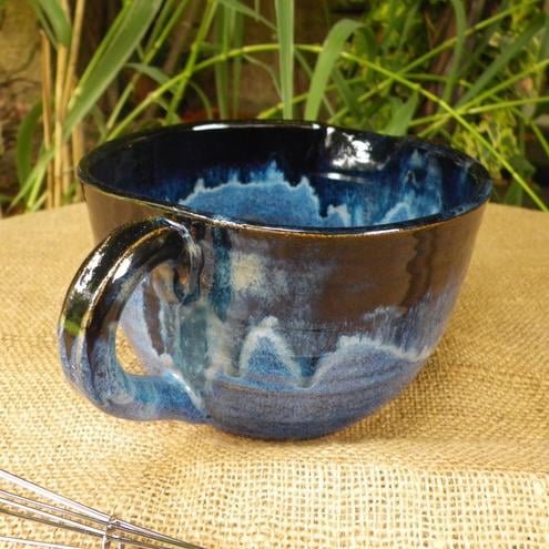 This batter bowl was thrown by me on my pottery wheel using strong white stoneware clay.