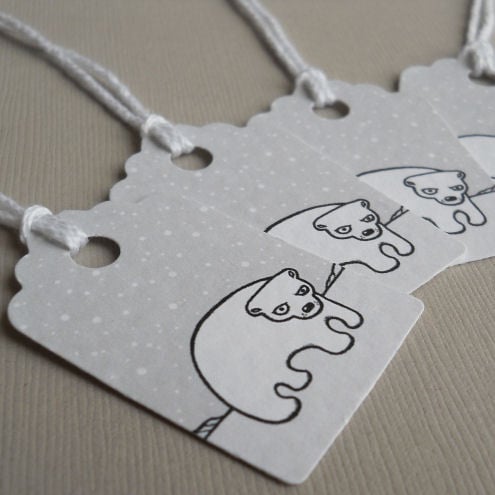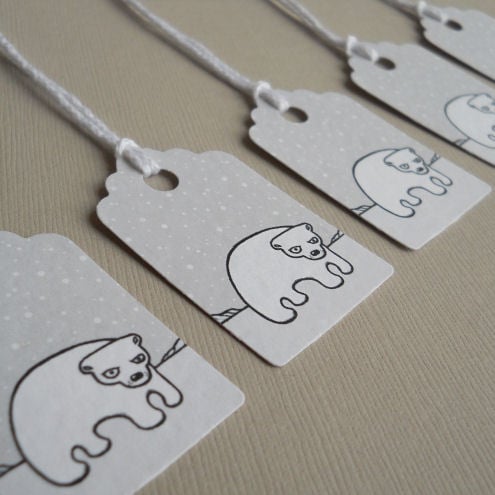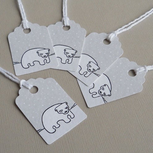 a pack of 5 tags, featuring my original illustration of a polar bear in the snow. cute and quirky - and there's a matching christmas card available too!