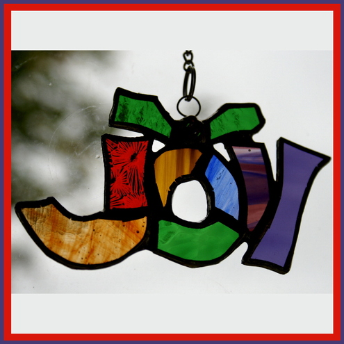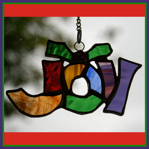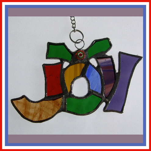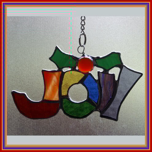 The first 3 pictures are of the Joy suncatcher for sale here. The 4th is of one I made previously so you can see that each is unique.