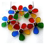 This is a stained glass suncatcher made using the Tiffany copper foil technique.