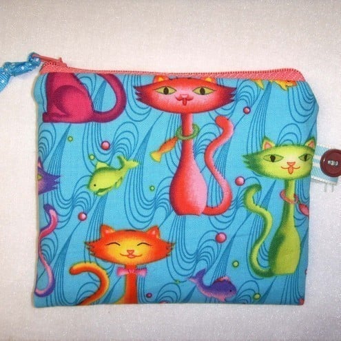 Pretty little colourful cats printed fabric coin purse, perfect for your coins, notes and cards.