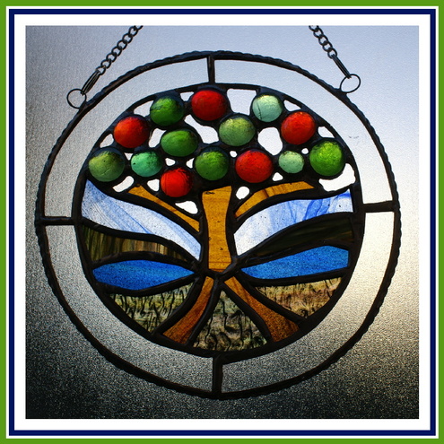 This piece would make a super and very individual present. I think it is more like a picture than a suncatcher. It is absolutely unique. I never make two things exactly the same, I always use slightly different colours and textures of glass.