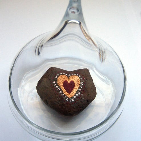 This is a heart shaped stone painted with lots of love and attention. It measures 5.5cm x 4.5cm. I used acrylic paint then varnished it for protection.