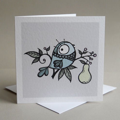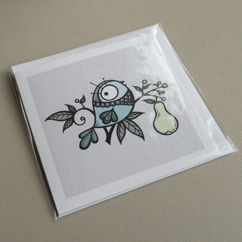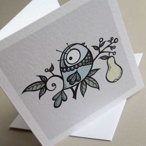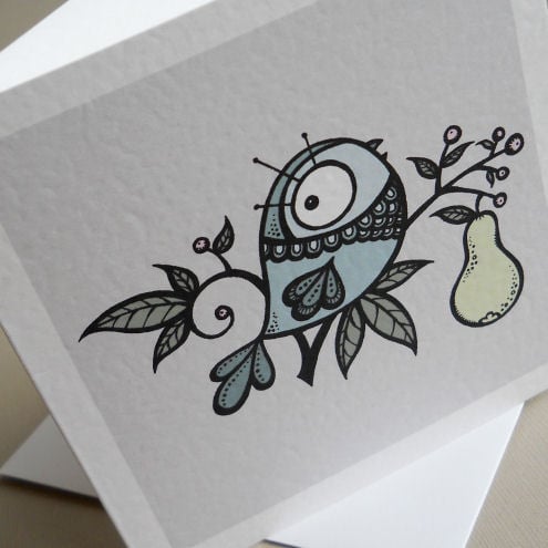 no christmas would be complete without a partridge in a pear tree, and this plump little fellow would make a lovely card to send to friends and family this holiday season!