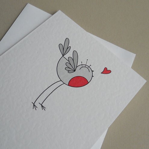 it is printed onto good quality textured white card (300gsm), comes with an envelope, and is sealed inside a cellophane bag. it is standard A6 size (10.5cm x 14.85cm)