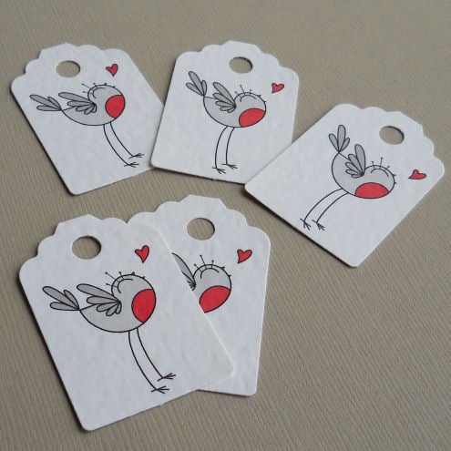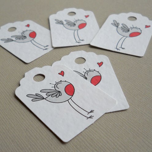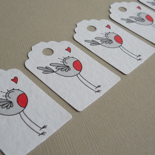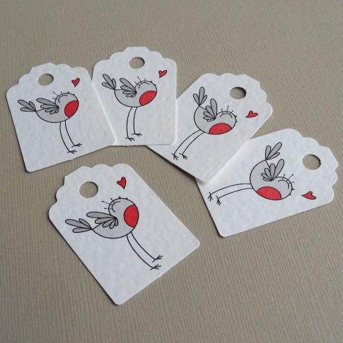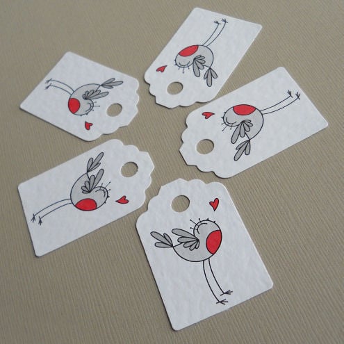 a pack of 5 tags, featuring my original illustration of a little robin.