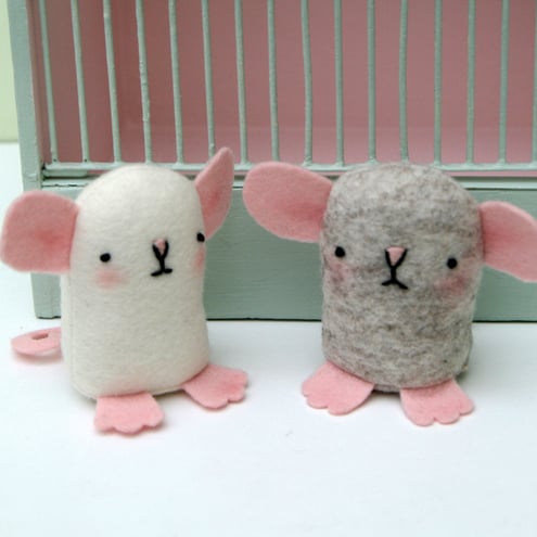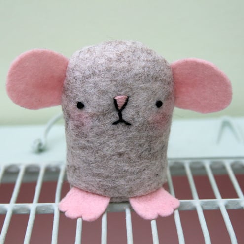 Here is the cutest baby mouse in need of care, please give him a loving home! Hand made by me out of oatmeal wool felt ,soft stuffing and weighted with pellets(enclosed safely) perfect size for sitting in your hand. His cute face is Hand embroidered.He measures 2 1/4" high. His friends are available in other listings.