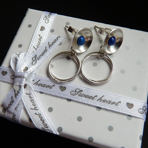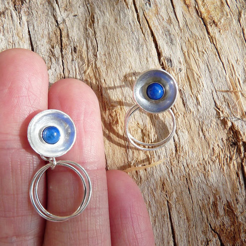 These lovely earrings with Lapis Lazuli are completely hand made in sterling silver. The earrings have been polished to a bright and shiny finish. They have sterling silver butterfly scrolls.