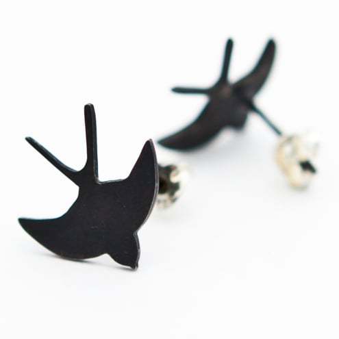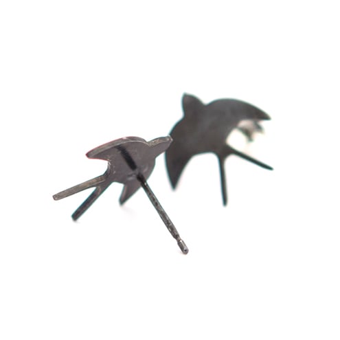 These beautiful handmade oxidised silver stud bird earrings are inspired by the Swallow in flight. The simple design makes a lovely silhouette.