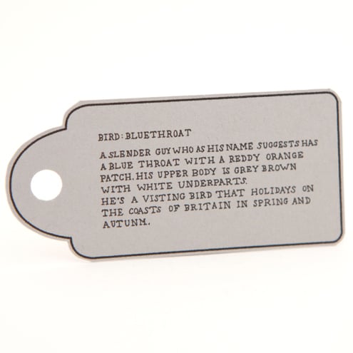 They come in a grey/black jewellery box made from recycled cardboard. With a handmade tag with information about the bird.