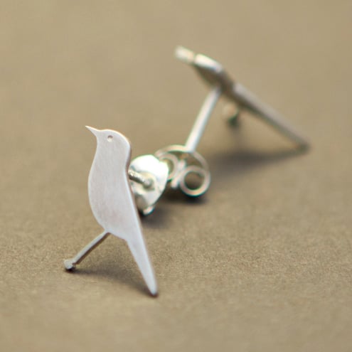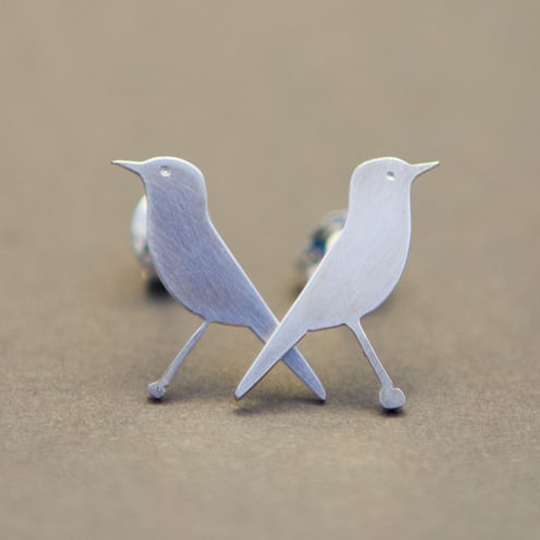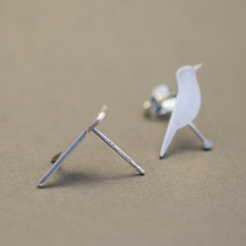 These beautiful handmade silver stud earrings are inspired by the Bluethroat bird. The simple design makes a lovely silhouette.