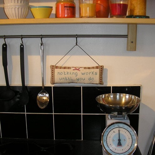 Hand embroidered to my own original design, I have used blue thread on a cream fabric panel.