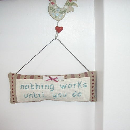 Hand embroidered to my own original design, I have used blue thread on a cream fabric panel.