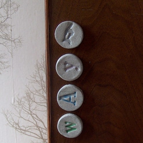Little ceramic discs spell the words 'This Way Up', just in case the mouse gets confused! Ceramic banners are on the bottom of the clock embossed with the words 'Hickory Dickory Dock' and finished with coloured underglaze.