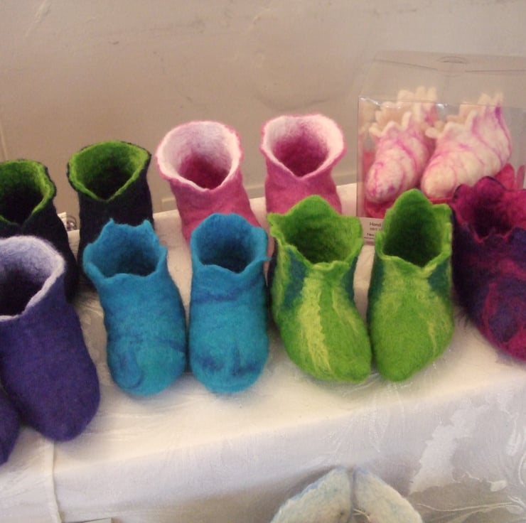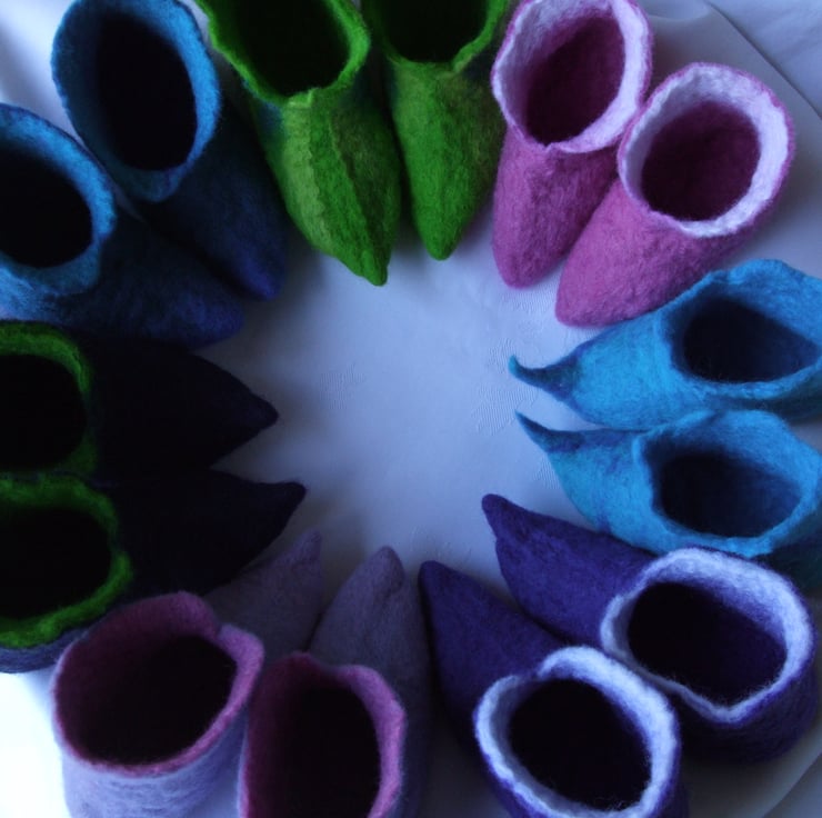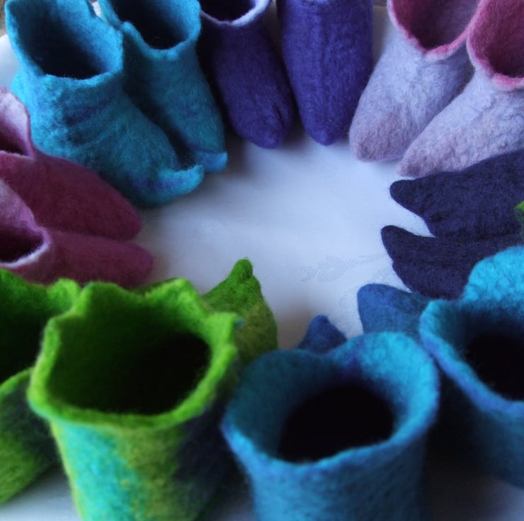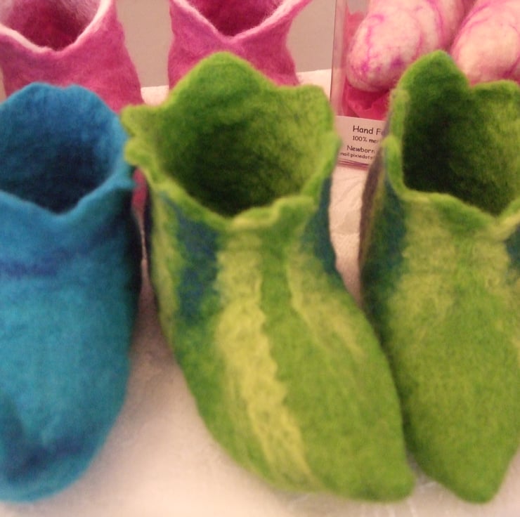 Beautiful handmade felt, pull-on pixie bootees in any colour, made to order.