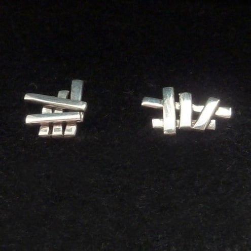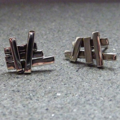 These remind me of abstract stick people, train tracks, Japanese script or even fences! Each stud, and pair, is individual (you'll receive the ones pictured here).