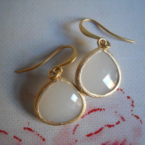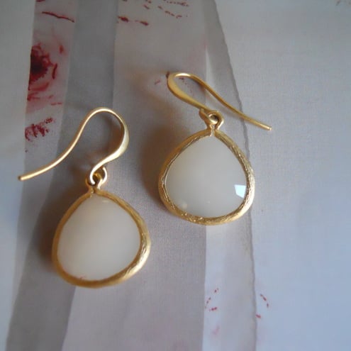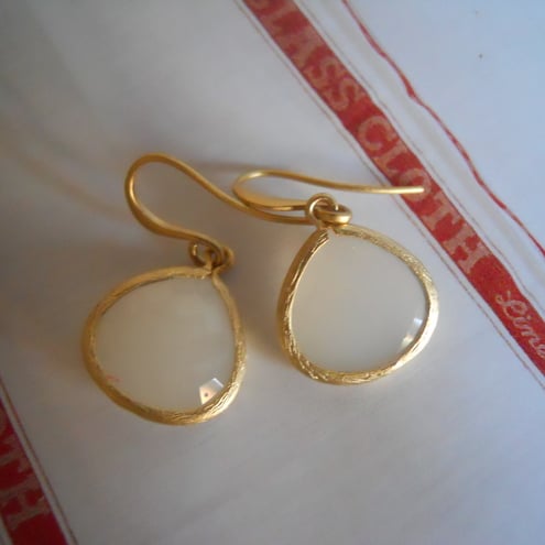 These gorgeous gold, framed, white, faceted, glass, earrings are stunning. The pictures really don't do them justice. They hang on gold kidney ear wires. These earrings come in all sorts of colours so if you have a colour in mind you would prefer just let me know. I also have these in black. ♥♥♥