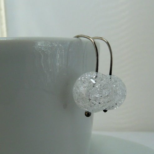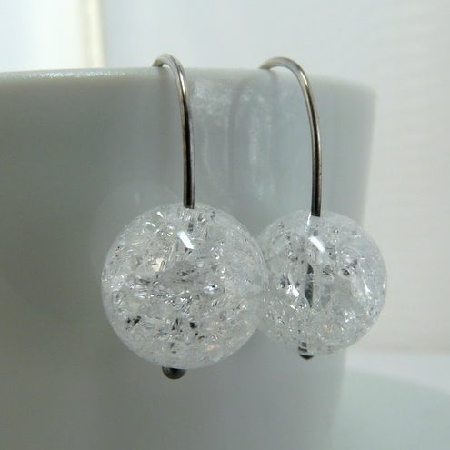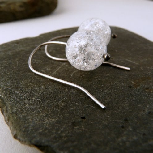 Winter has come early here and there's nothing icier than crackle crystal. These icy 6mm crackle crystal beads hang from a simple sterling silver wire which I have lightly oxidised and polished to a deep shine. The crackles through the crystal reflect light beautifully, which contrasts with the simple round shape.