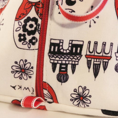 Sewn in beautiful designer fabric, these gorgeous Pyramid Project Bags measure 7" high x 7" wide. The cases are fully lined with a zip fastening closing and carry handle made from ribbon. They are able to hold a sock knitting project with Dpns and 100g of yarn or a small crochet project, yarn and hook.