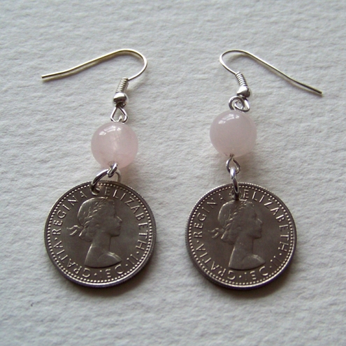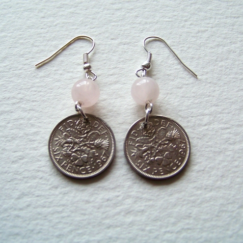 Genuine Vintage 1967 sixpenny pieces teamed with Genuine Rose Quartz beads to represent Luck and Love.
