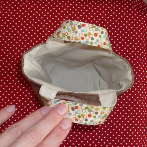 The bag is lined with natural cream calico, and I have made the little handles out of the dotty fabric too.