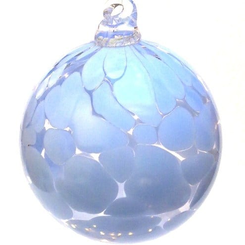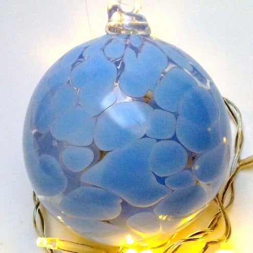 A soft pale blue coloured glass bauble.