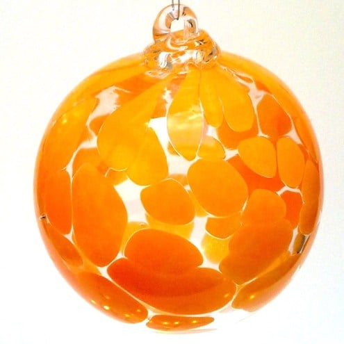 A vibrant opaque orange coloured glass bauble.(please note this colour looks a little less yellow in real life,It's coming out so bright on screen).