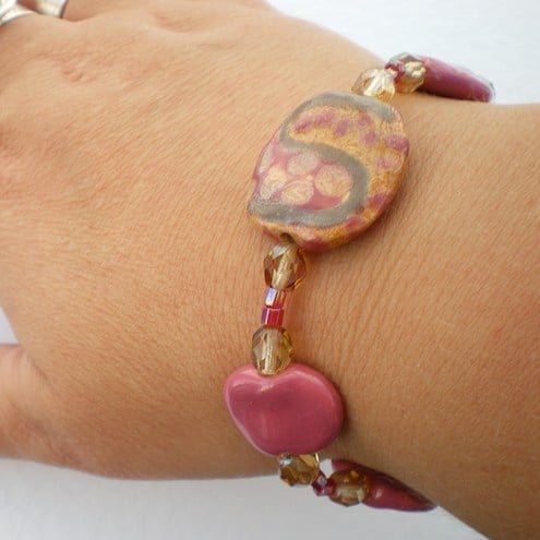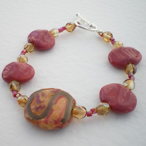 Stunning pink kazuri (meaning small but beautiful) bead bracelet. 2cm diameter kazuri pink, gold and brown focul bead. Really gorgeous. Four pink kazuri beads, strung with pink seed beads and gold czech fire polish beads.