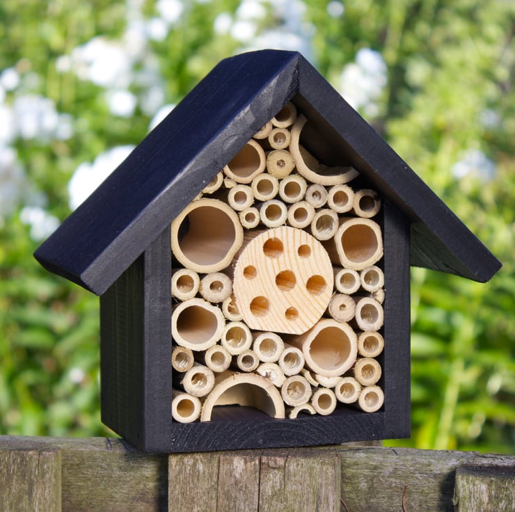 It is designed primarily to be used by solitary bees such as Mason Bees or Leafcutter Bees, which are non aggressive and excellent for pollinating in the garden, helping to increase fruit yields.