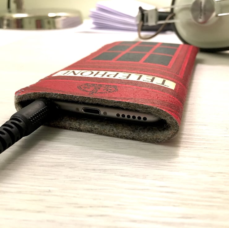 This British red phone box case is a great protection for your smartphone. Made from very durable, long-lasting and scratch-free felt with a thin fade-resistant coating on top it has a unique style and will last a lot longer than an ordinary felt case.