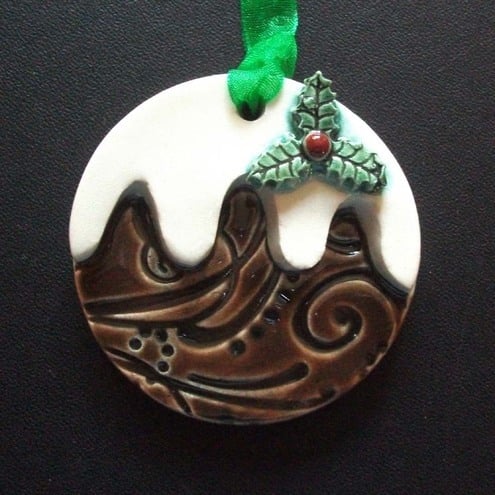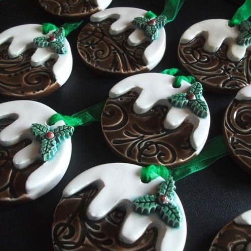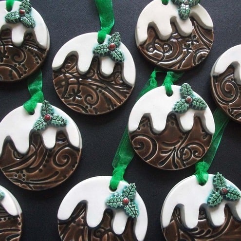Each decoration measures 5.5cm diameter and is glazed in the front only.