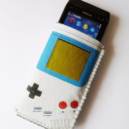 This portable game console case is a great protection for your iPhone, iPod or any other smartphone. You can title your tape yourself with a pen. Made from very durable, long-lasting and scratch-free felt with a thin fade-resistant coating on top it has a unique style and will last a lot longer than an ordinary felt case.