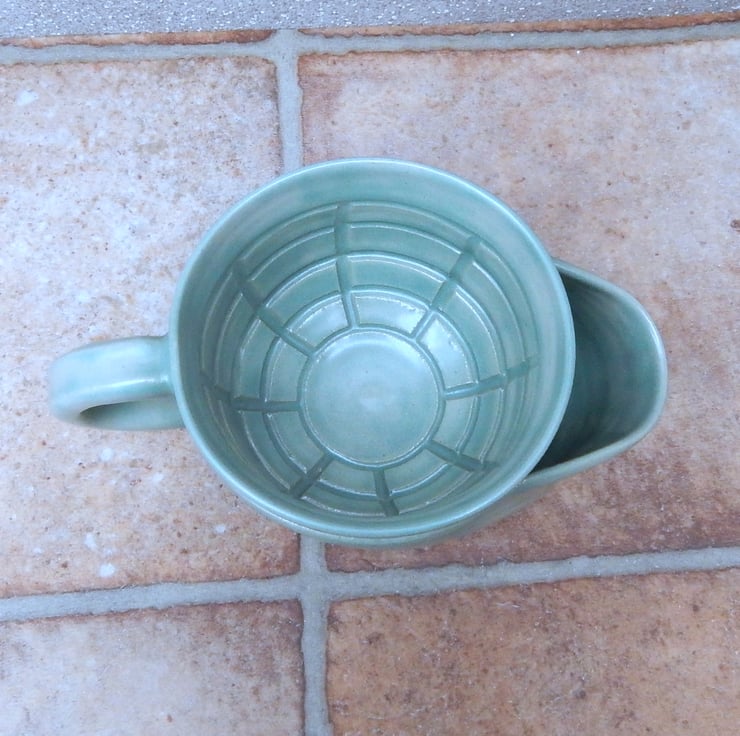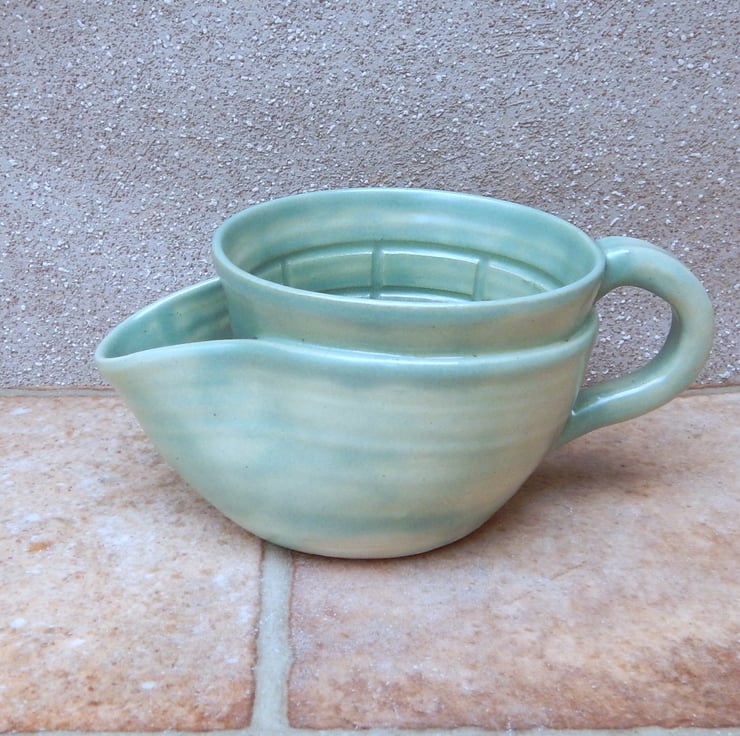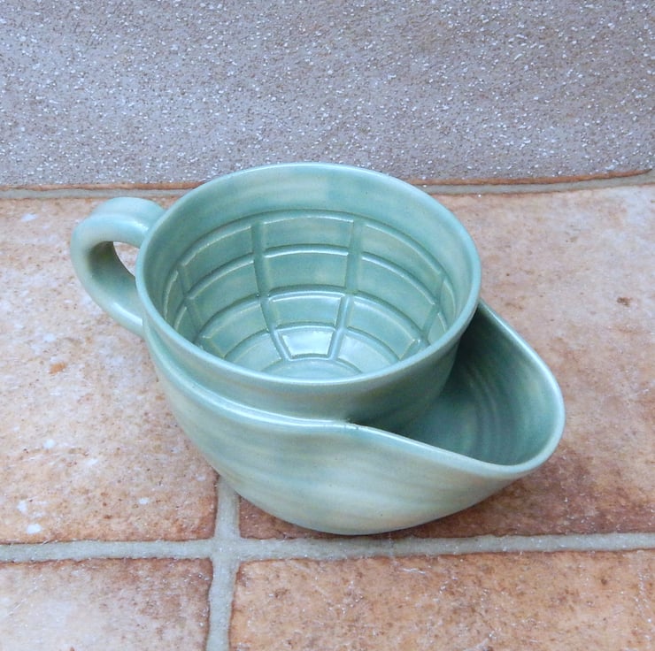 I'm trying out a new smaller/lighter wet-shaving scuttle, wheelthrown using strong white stoneware clay and finished in a lovely satin celadon light green glaze.