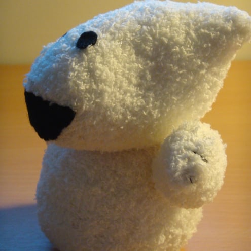 Winter is here.. a fluffy white sock, black felt.. Attenborough's Frozen Planet! Oh, and the Polar Bear installation at Snugbury's Ice Cream farm in Cheshire!