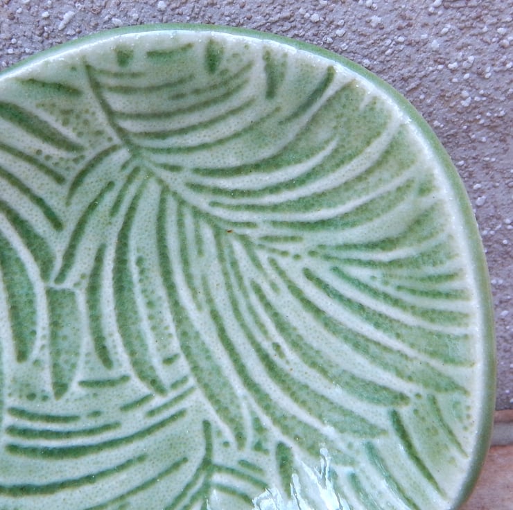 I have finished it with a pretty light green celadon glaze which shows up the texture amazingly..