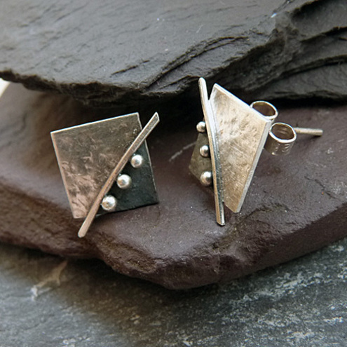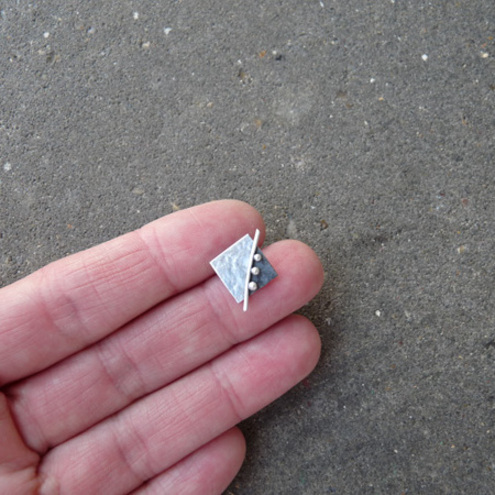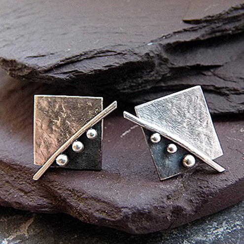 These contemporary square studs are completely hand made in sterling silver. They have been textured, partially oxidized and given a satin finish. They come with sterling silver butterfly backs.