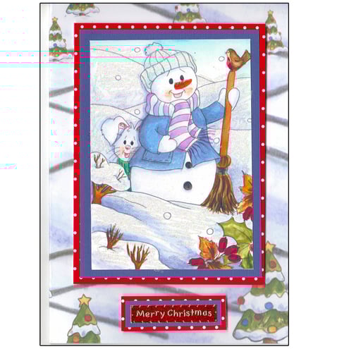 This snowman is wrapped up warm and has a cheery Robin for company.