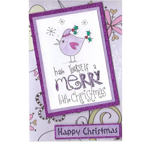 Designs and sentiments vary. Sentiments are typically "Happy Christmas" or "Merry Christmas". If you would like a specific sentiment, or design let me know otherwise I will choose one for you.