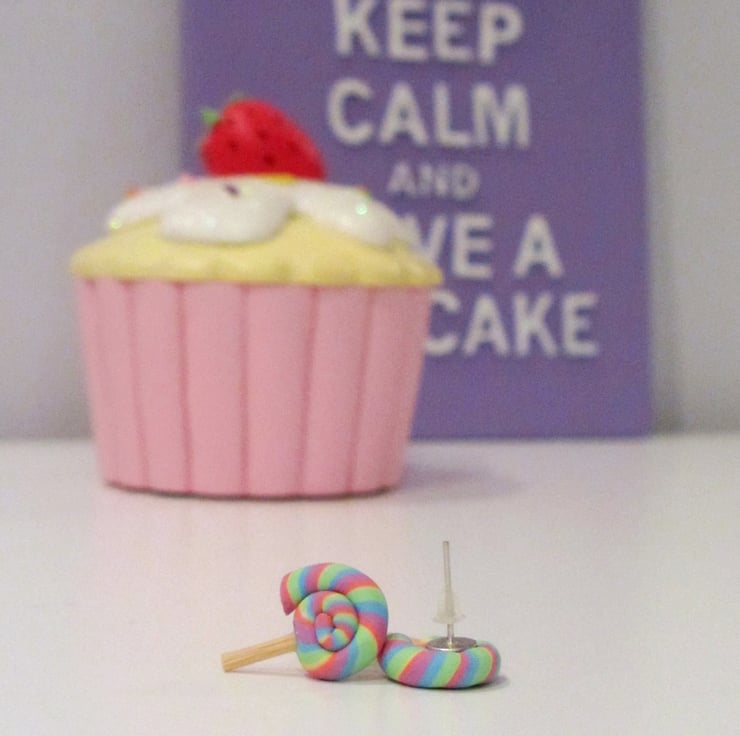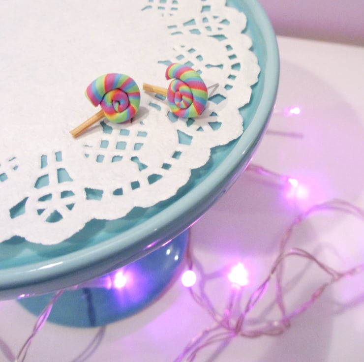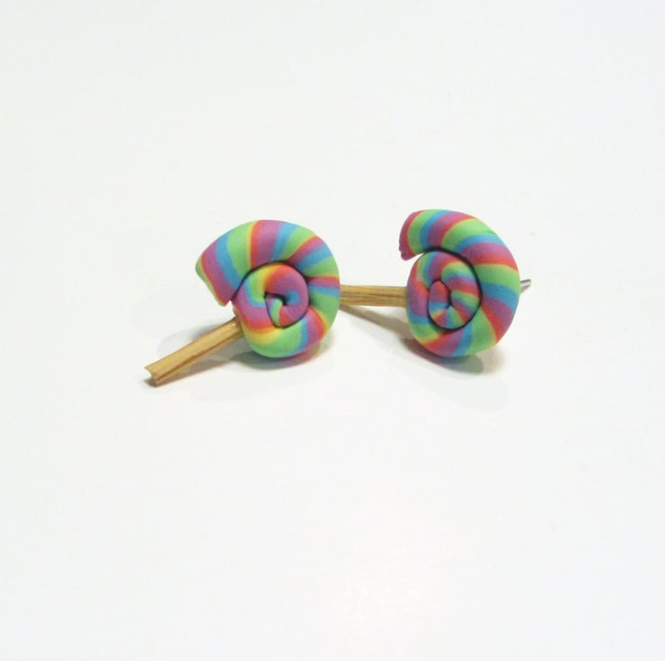 A gorgeous pair of rainbow swirly lollies on stud style earrings! As authentic as the ones you win at the fun fair!
